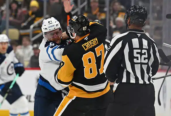 NHL:n kärjessä paineleva Winnipeg Jets pöllytti Pittsburgh Penguinsia 4-1 (1-0, 2-0, 1-1) -numeroin Suomen aikaa varhain lauantaina. Supertähdet, Pittsburghin Sidney Crosby ja Winnipegin Kyle Connor pudottivat hanskansa kolmannen erän alussa matkassa vaihtopenkille.