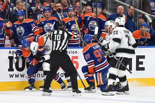 Kapanen kimpaantui Kingsin Alex Laferrierelle, joka nahisteli Edmontonin supertähti Connor McDavidin kanssa nostaen tämän jalasta jään pintaan.