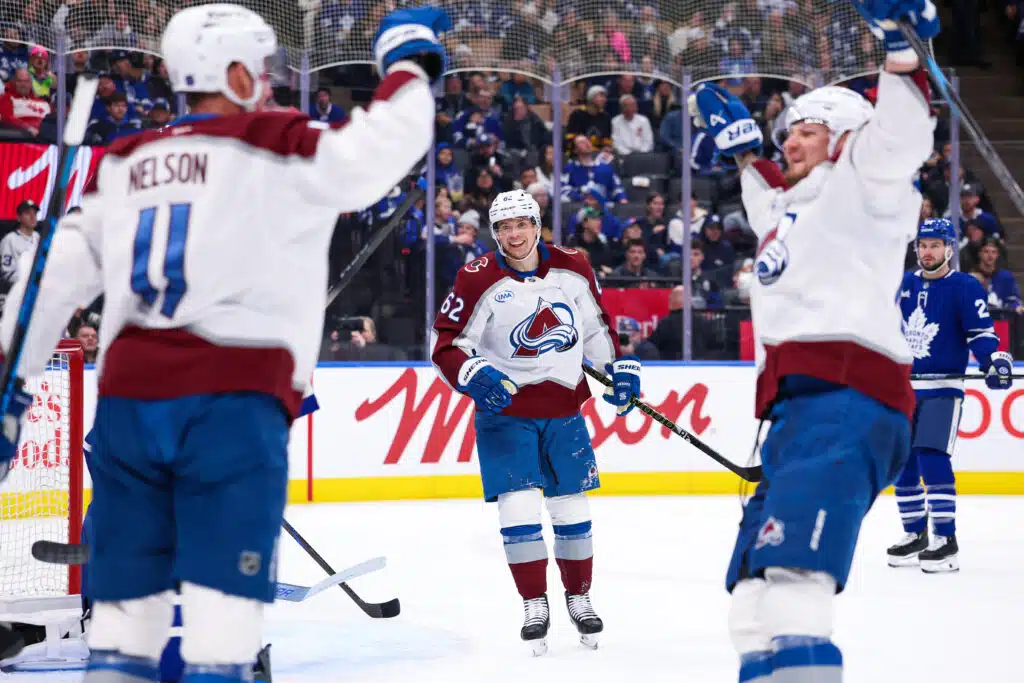 Artturi Lehkonen nousi Colorado Avalanchen sankariksi kahdella maalillaan San Jose Sharksia vastaan. Lehkonen nautti osumistaan.