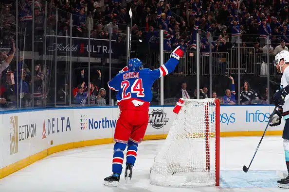 Filip Chytil tarjoili ja Kakko tälläsi kiekon läheltä sisään (video tämän tekstin alla). Niko Mikkola merkittiin Kakon maalin kakkossyöttäjäksi.