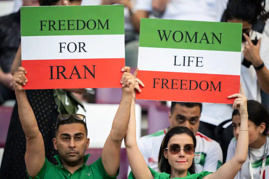 Iranissa oli samaan aikaan mielenosoituksia maan poliittista pappisvaltaa kohtaan. Iranin uskonnollinen poliisi oli tappanut 22-vuotiaan naisen Mahsa Aminin ja tästä seuranneissa mielenosoituksissa poliisi tappoi Iranissa useita mielenosoittajia. Joitakin mielenosoittajia tuomittiin kuolemaan.