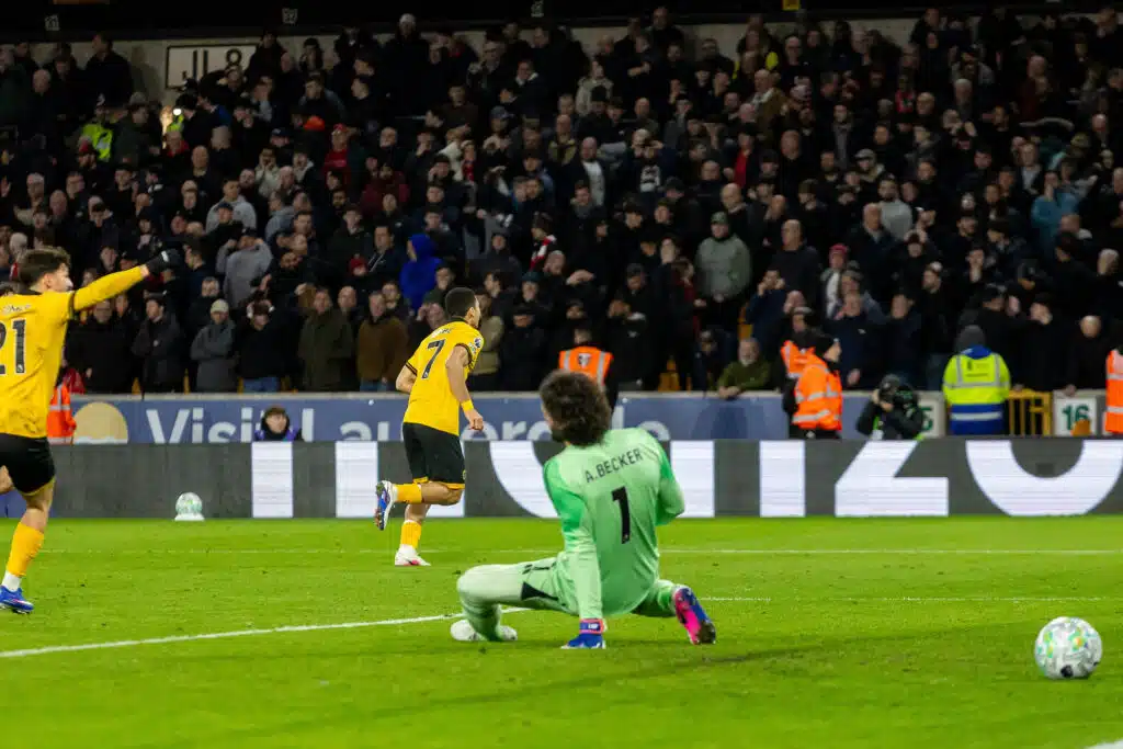 Ottelu ratkesi dramaattisesti neljännellä lisäaikaminuutilla. Liverpool menetti omalla alueellaan pallon ja Andre pääsi vapaasti etenemään rangaistusalueen rajalle, josta lähtenyt tarkka kuti painui verkkoon ja näin Wolves pääsi juhlimaan 2-1-voittoa.