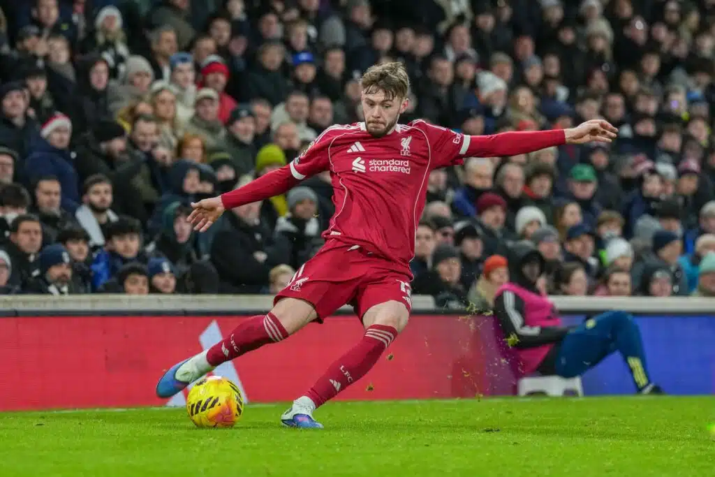 Liverpoolin puolustaja Conor Bradley loukkaantui aivan ottelun loppuhetkillä. Hän laskeutui huonosti alas yrittäessään purkaa palloa.