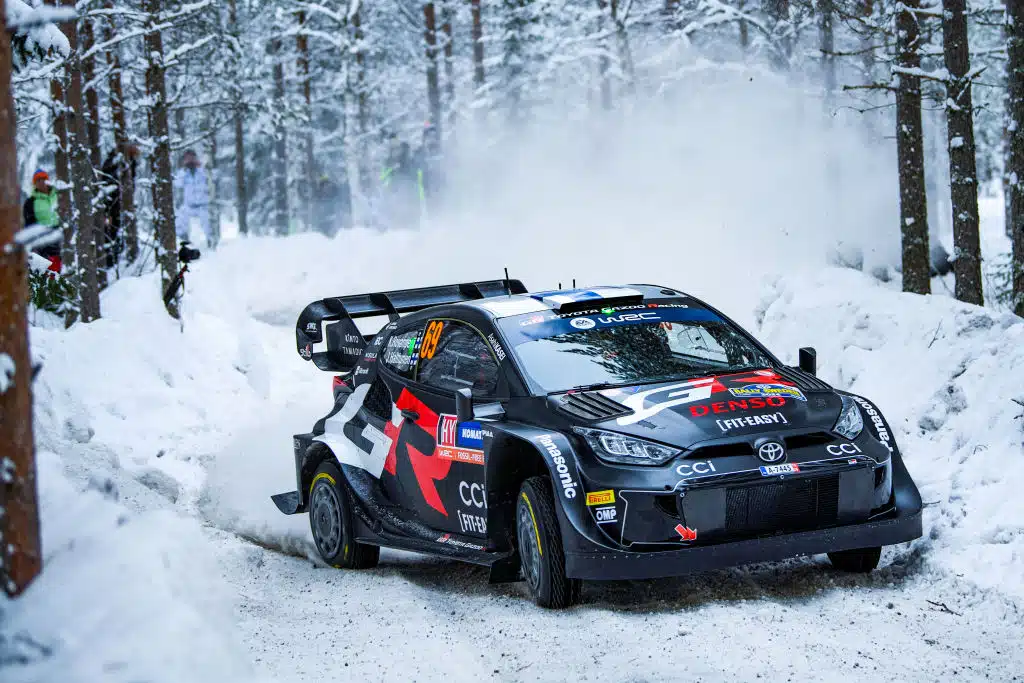 Kalle Rovanperä johtaa kilpailua 1,4 sekunnin erolla tallikaveriinsa Takamoto Katsutaan. Toyotan vahvaa kokonaispanosta täydentää kaksi sekuntia Rovanperästä jäänyt Elfyn Evans.