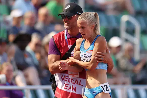Camilla Richardsson suli yleisurheilun MM-kisojen helteessä Eugenessa. Richardssonin juoksu päättyi runsaan 3000 metrin jälkeen keskeytykseen naisten 5000 metrin alkuerissä.